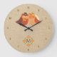 Lovebird Owls on Burlap Monogram Clock