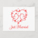 Lovebirds Boho Red Love Heart Just Married Wedding Announcement Postcard