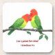 Customisable Hard plastic coaster with cork back featuring the image of two lovebirds that were done in coloured pencil and shows an inspirational verse. Great for placing your glass on and being reminded of the true nature of love.