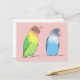 Bright & colourful lovebirds against a rose quartz background. No valentine's day or anniversary is complete without an expression of love written from the heart. Why not express yourself on original art instead of a last-minute card shop run? This original pencil drawing was coloured digitally and features two fischer's lovebirds- one green and one blue- with a tiny heart floating between them. How romantic!