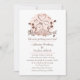 This cute invitation features a cartoon image of a pair sweet brown cartoon lovebirds snuggling in a floral nest with hearts and flowers highlighted against a pastel pink background. The back of the invitation features kissing lovebirds with hearts and flowers highlighted against a creamy pink background.