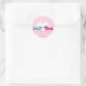 The sticker is made on wonderful paper and had no problem sticking to the bag that I purchased to put it on. I wanted to find a design that would be cute for the bride and groom and this one fit the bill as it has cute "bees" buzzing around and the wedding was taking place in a town called "Bee Cave". The packaging was great and protected the stickers. The website is easy to navigate and there are so many color choices. I had no problem finding a color that the bride was using on everything else selected. The design was adorable and there were many to choose from. You can make the figure as larger or smaller and you can place the photo and writting whereever you want to in the sticker. The printing is fabulous..better than expected.