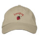 Cute cap with embroidered ladybug in black and red, and the word LOVEBUG, also embroidered in red.  Fully stitched, not just stamped on or printed.  Very cute!