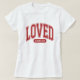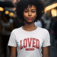 Celebrate the greatest love you've ever known this Valentine's Day with this eye-catching women's short sleeve white collegiate style tee displaying the word "LOVED" in bold red varsity lettering along with the scripture reference 1 John 4:19 which serves as a heartwarming reminder that we are able to love God only because He first loved us through gifting His Son Jesus as our Redeemer.