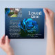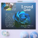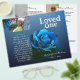 Loved One typography with FOREVERMORE in an infinity symbol and digitally illustrated blue roses on a memorial or funeral service program. Includes four places for photos of your loved one and text for an Order of Service, Obituary and other details. NOTE: this comes as a flat sheet. You will have to fold yourself.