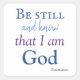 A lovely white sticker, this design features "Be still and know that I am God" Psalm 46:10. This scripture is written in lovely blue and purple text. Great for representing your faith everywhere you go.