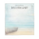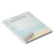 A notepad with a beautiful rustic image. Subtle colours of light blue, sandy brown and gentle white. A beach scene with a boat on the shore and a faded lighthouse off in the distance with birds flying around. An elegant shabby look.