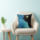 Lovely Black Cat in Blue Watercolor Throw Pillow