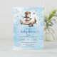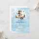 Celebrate your baby boy in style with this adorable blue and gold teddy bear pilot baby shower invitation. Designed with charming aviator airplane details, this invitation brings a sweet vintage travel theme to your celebration. Personalizable and fully editable, you can easily customize the text, names, date, and event details to match your shower. The soft watercolor teddy bear in pilot goggles creates the perfect cute adventure mood for a boy baby shower. Ideal for airplane-themed parties, aviator baby showers, or little adventurer celebrations. Available as a digital download or printed format, this stylish invitation makes planning effortless. A beautiful keepsake design for parents who love travel, airplanes, and charming teddy bear themes.