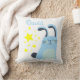 Customisable baby boy pillow with a cute blue cartoon bunny and little yellow stars.