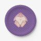 The guests to your child's 1st birthday will be delighted bt this Lovely Bunny With Heart Purple Birthday Party paper plates unique design featuring a cartoonish baby girl bunny in pastel colours on a purple with dots background.