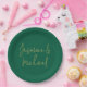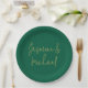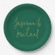 Lovely Chic Calligraphy Couple Names Green & Gold Paper Plate