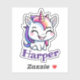 Personalised name sticker for unicorn lovers. Lovely little sticker with your name and a sweet illustration of a smiling unicorn. Use it to add a touch of magic and fantasy and at the same time mark your electronics and other personal items,