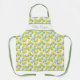 Personalised Mrs lemon apron. Fresh yellow lemon print paired with a pretty and calm shade of green and lightness of the white background. The base of the apron is white while the straps are green. It's personalised with a custom name printed across the chest in beautiful cursive script resembling a calligraphic hand. Makes a lovely personalised gift for a bride or a newlywed lady.