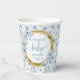 Add a memorable touch to your special day with these customisable watercolor dusty blue floral paper cups, designed to celebrate your little one in the most charming way.