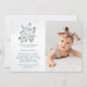 Lovely Dusty Blue Watercolor Floral Photo Baptism Invitation