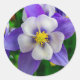 Lovely purple and white flower, is featured on this round sticker. Use this sticker for those special mailings, decorating, scrapbooking and more!