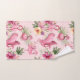 Cute pink exotic flamingos and flowers pattern on pale pink background