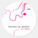 Lovely girl icon pink hair Hairstyling branding Classic Round Sticker