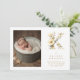 Lovely Gold K Initial with Romantic Floral Design for Newborn Photo Announcement Card.