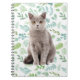 Lovely Gray Cat with Flowers and Leaves Pattern Notebook