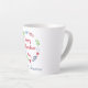 Enjoy a latte with a patriotic latte mug. This custom made item features a beautiful red green and blue wreath with "Happy Independence Day" written inside with red cursive font. Underneath your text is written in lovely blue font. Personalise your latte mug today!