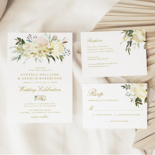 ivory floral greenery wedding invitation suiteDesigned by Tafa Ryan