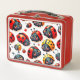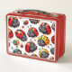 This is a standard metal lunchbox that appears to work just fine. We designed this box ourselves with an uploaded photo and custom text on the front and back. It looks absolutely beautiful except the front of the lunchbox is not centered like it shows in the photo. The print borders don't align with the inset flat part of the box where the preview photo online showed it perfectly centered in there. The back looks nice and centered though.