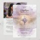 This design features a charming lilac & gold cross decorated with delicate wildflowers in watercolor effect, creating a soft composition full of natural beauty. The floral details blend lightly into the cross, forming a harmonious set that conveys delicacy and visual balance. The gold glitter effect adds a luminous and elegant touch that enhances the design with a refined sparkle. The atmosphere conveyed by the design is ethereal and elegant, where the softness of the watercolor effect and the golden shimmer combine to create a delicate, charming, and visually very special invitation.