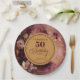 Lovely Maroon Blush Gold Floral 50th Birthday Paper Plate