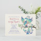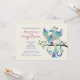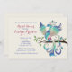 A fanciful peacock, with hues of blue feathers, is perched on a tree branch. This lovely invitation is well-suited for many celebrations including birthdays, bridal showers, engagements and more.