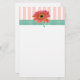 Pretty stationary with a header done in peach and white stripes, a green gingham ribbon and a peach coloured Gerber daisy. Soft and pretty stationary great for any woman.