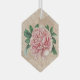 This romantic floral ornament features a gorgeous pink peony on a background of faux pink linen and lace. This ornament has a bit of a country floral chic vibe and adds a lovely spring touch to your winter Christmas tree. Or decorate with this ornament any time of year.