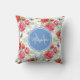 A lovely red poppy floral square throw pillow with pretty blue and orange butterflies. Personalise by adding your name and monogram to the rounded little boy blue octagon badge. This is part of the Red Poppy Floral Blue Butterfly Monogram Collection.