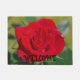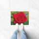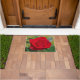 Pretty, red rose is featured on this door mat. With a message of "Welcome", this makes this door mat a great way to greet visitors! Sturdy latex action backing allows for a non-slip grip. This mat resists fading, mould and mildew and is decorated in the USA.