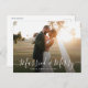 wedding announcement holiday card with white script and a thank you message to your guests. The couples image can be personalised.