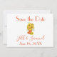Lovely and one of a kind, this sunflower themed save the date invitations is the perfect way to announce your approaching wedding date. Featuring a lovely and bright yellow sunflower design inside of a polka dot orange and white boot, use the templates to fill in information. Personalise yours today!