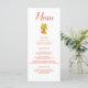 A lovely sunflower themed menu, this design features "Menu" written at the top using cursive orange font, all of your information is printed in orange readable font on a white background. Customise as you choose.