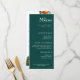 "The Menu" Wedding Menu presents a sophisticated selection of culinary delights against a lush, deep green backdrop reminiscent of the verdant foliage found in a secluded garden or a tranquil forest glade. The deep green hue exudes an aura of opulence and elegance, setting the stage for a memorable dining experience. The elegant header sets the tone for a refined celebration, inviting guests to indulge in a feast for the senses. Personalise this exquisite menu with your names and date, adding a bespoke touch that transforms it into a cherished keepsake of your special day.