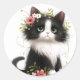 Lovely Tuxedo Kitten with Flowers Classic Round Sticker