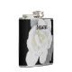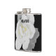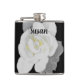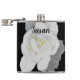 Lovely White Gardenia Flower on Black Hip Flask