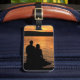Easily customise the text on the back of this fine art photography luggage tag which features two lovers in silhouette enjoying the sunset at Cayuga Lake in Ithaca, NY. This is one of the Finger Lakes of upstate New York. Beautiful orange, yellow and gold colours the waves and ripples in an abstract pattern. Make your luggage stand out on an airport carousel with unique tag designs!