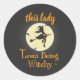 This lady loves being witchy in orange mixed font can be personalised with your name. The silhouette of a witch in a skirt and high heels with long flowing hair and a witch's hat, riding on a broom, illuminated by moonlight with bats flying around. Set on a solid black background.
