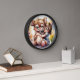 The size of the clock is dramatic and the abstract alcohol ink design is soothing and intricate at the same time. I chose the black frame that adds pop to the blue and gold design. The gold printing would be better in a slightly darker or larger font. I love it and I’m looking for just the right place in ny new apartment. I would recommend this clock for a personal gift or a present. I feel that the quality is excellent for the money! I’m a bit of a clock nut so I’m pretty particular about my purchases. The clock is larger in diameter than many if the clocks I have, so it stands out very well. I think a slightly darker printing color and a moderately larger size would best suit a professional decor or add more impact in a work place item.