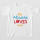 My Abuela Loves Me T-shirts, cards, stickers, bodysuits bags, and more with colourful red, yellow, and blue text and heart design. These Abuela Loves me apparel and gift items will make your abuela smile!