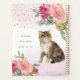 A lovely cat surrounded by delicate flowers. The purr-fect (perfect) gift! Simulated gold glitter.