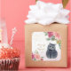 A lovely cat surrounded by delicate flowers. The purr-fect (perfect) pawty! Simulated gold glitter.