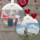 Loving Couple 1st Christmas Holiday Keepsake 2 Photos Ornament. Modern holiday design with a photo, your names and year and text on each side - add your photos on each side. A sweet photo keepsake for a loving couple for the 1st Christmas.