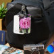 Classy-sassy, beautiful luggage tag with a vibrant pink rose. Loving Myself!