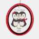 Perfect for your first Christmas together or your tenth. This ornament has an adorable loving couple of penguins holding each other. It's in a white centre of a circle with an outlined red one, then black with a red with white polka dot outer border of ornament. Give as a gift or buy for yourself. This will be a keep sake for many, many years to come. ©JW Illustrations
